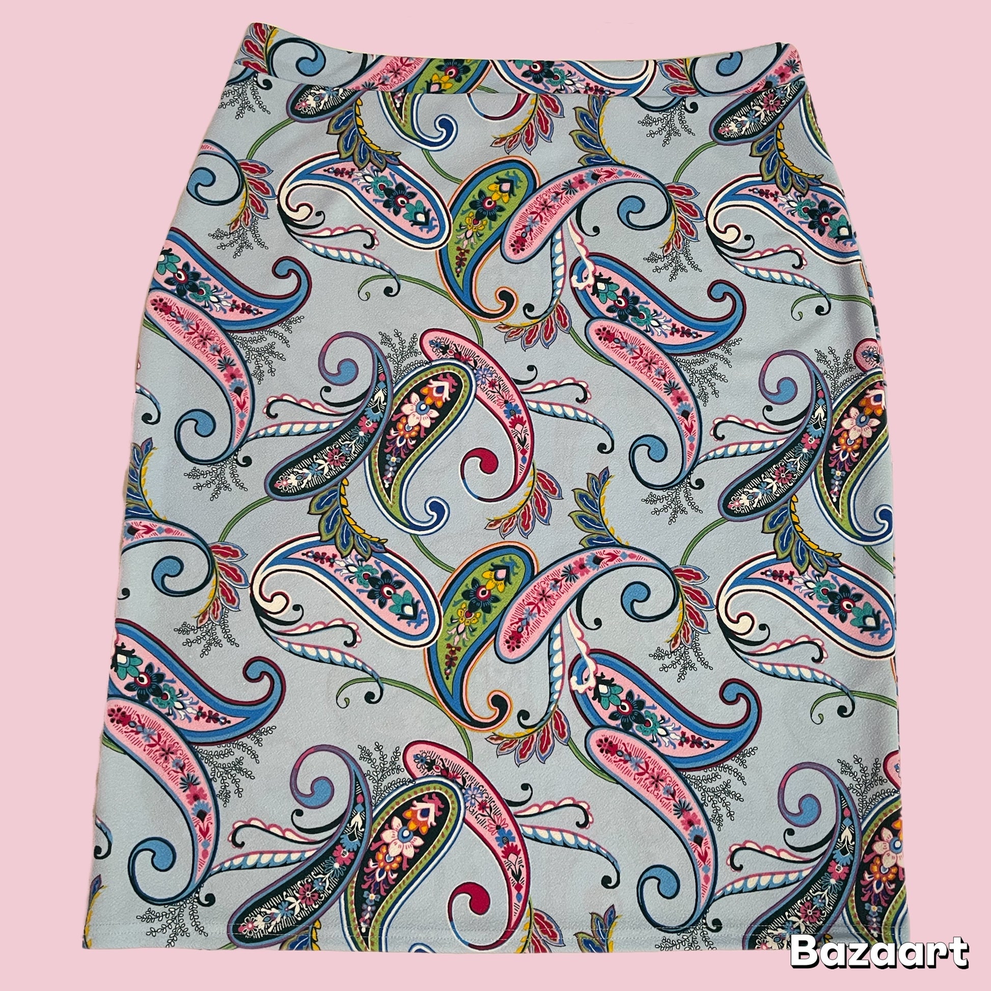 Here's a sweet new print!! This precious paisley print is great so pretty! Our classic skirt is made with a yoga waistband. Our skirts are handmade to order. They are 26" but can be made longer upon request. You can also request an elastic waistband. Please allow up to 3 weeks for your order to ship.