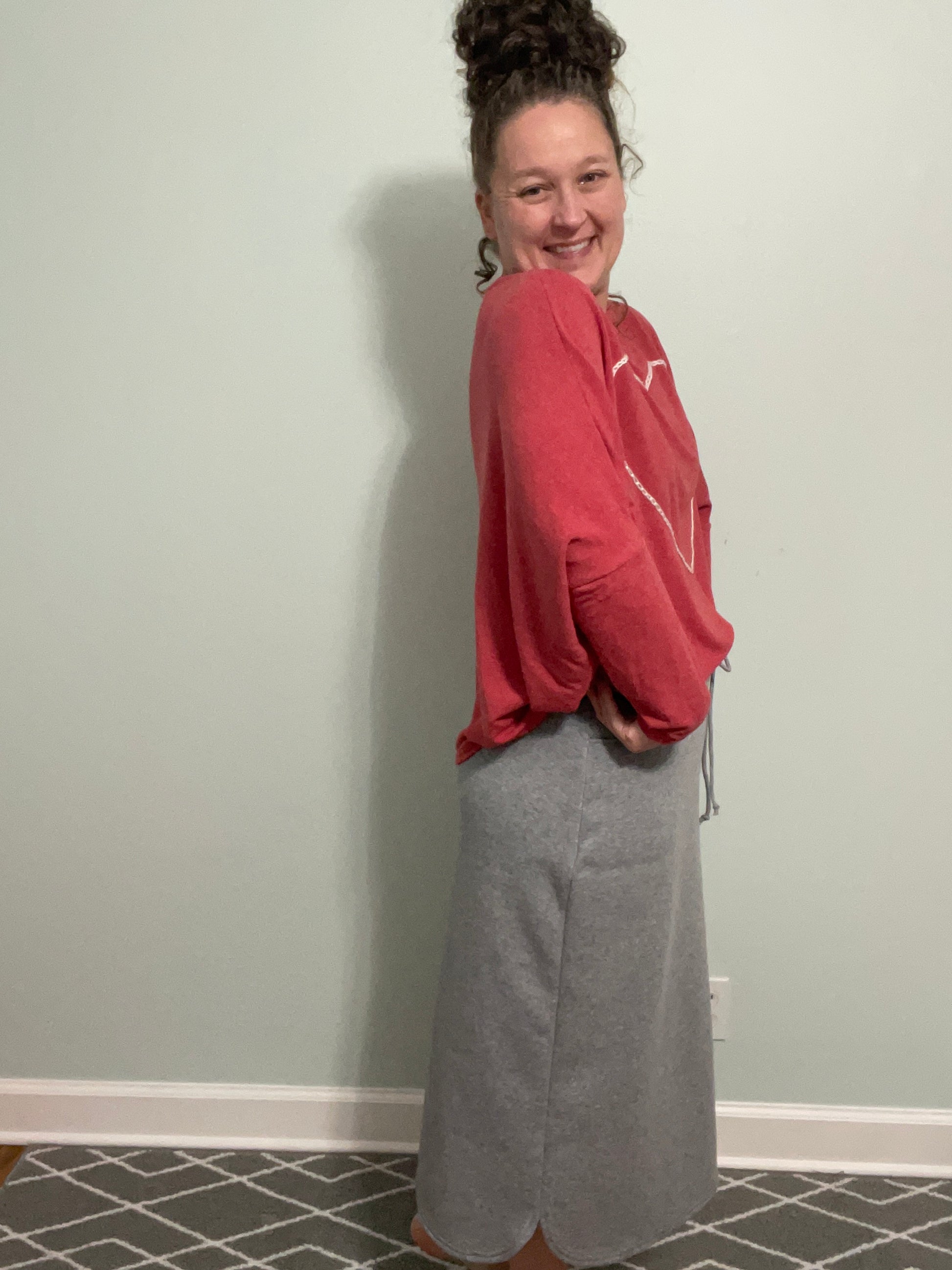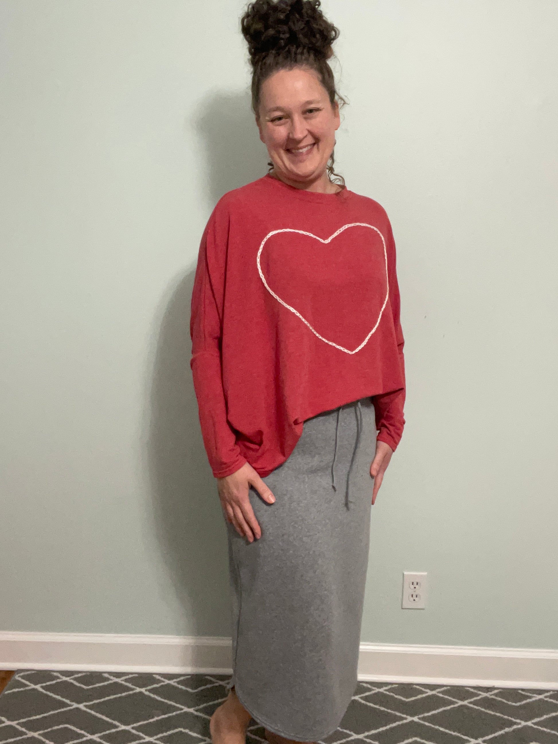 Our newest skirt is our Midi length sweatskirt! Made from the softest sweatshirt fabric, this skirt is sure to be a hit! This skirt is relaxed fit and sports a drawstring elastic waistband for your comfort and perfect fit!