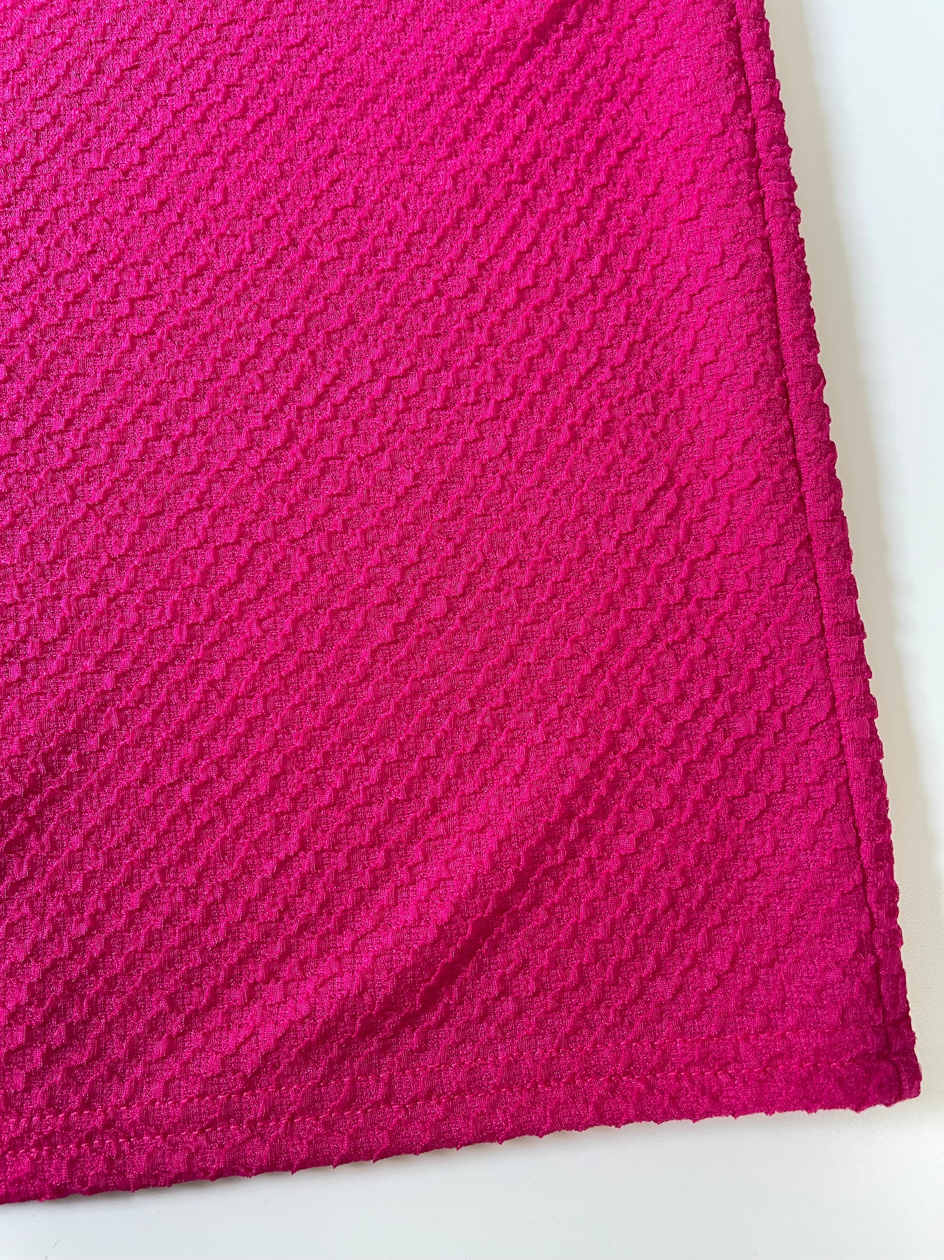 You are looking at our classic yoga waistband made with a gorgeous textured raspberry knit fabric. Available in sizes S - 3XL. 26” long. Our model is wearing a custom size in a 22.5” length.